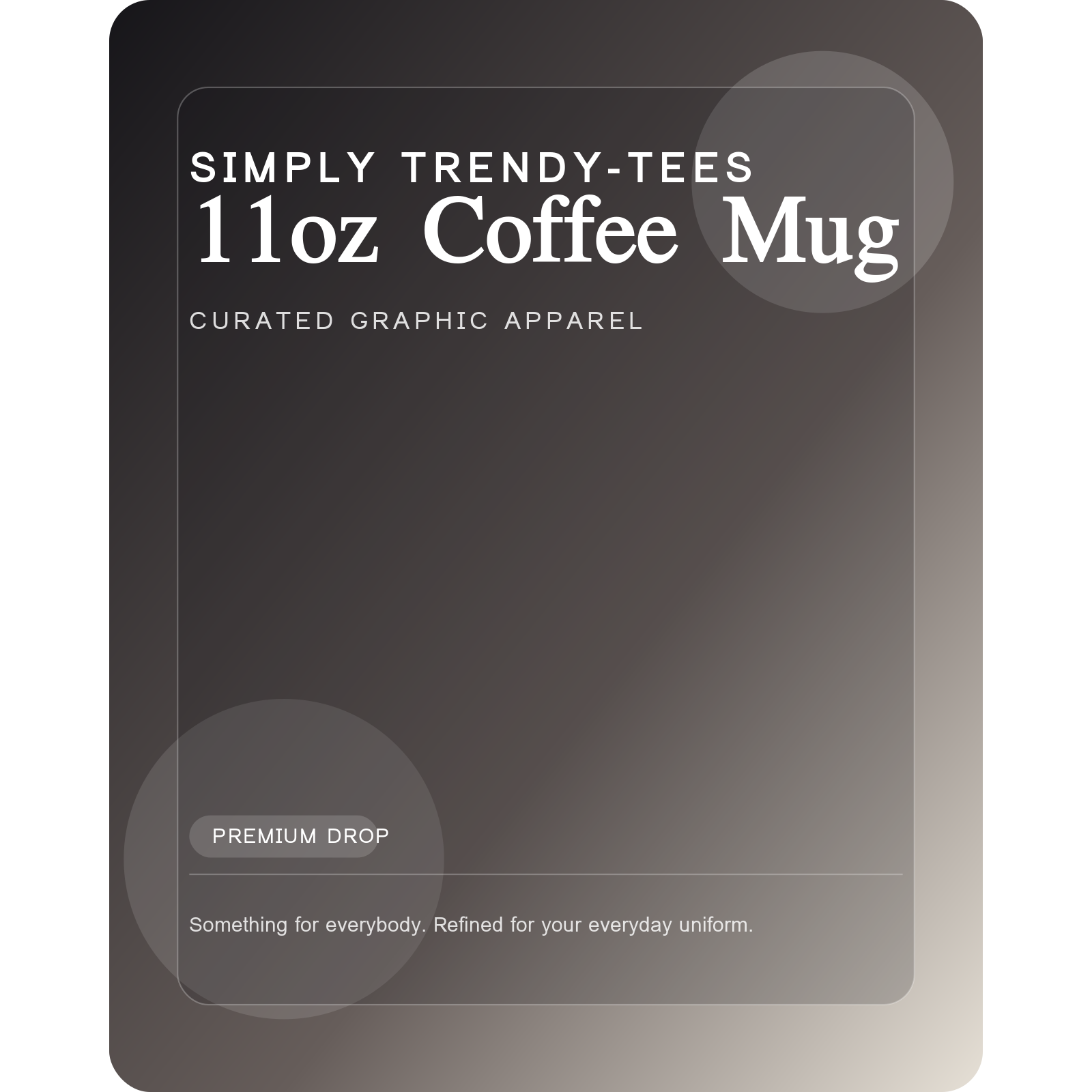 A standard ceramic coffee mug with ten niche-specific SIMPLY TRENDY-TEES designs and easy giftable pricing.